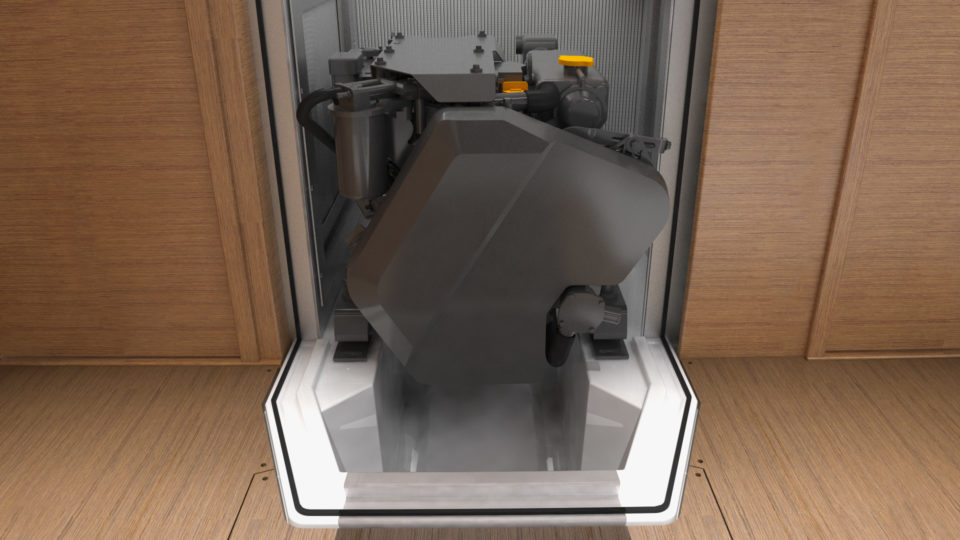 El X4⁶ viene de serie con un motor diésel Yanmar common-rail ultramoderno que genera 57 CV y se puede actualizar a una unidad de 80 CV. El compartimento del motor está insonorizado según la especificación ‘Super Yacht’, utilizando una pesada capa de caucho sólido de 8 mm, 50 mm de lana de roca insonorizante y finalmente cubierto con un revestimiento de aluminio perforado. Todas las aberturas están selladas para eliminar el ruido.